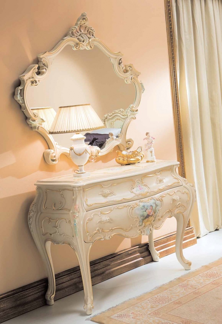 Зеркало в классическом стиле, от фабрики SILIK, коллекции Inner Landscapes. Фигурное зеркало обрамляет рама, выполненная из дерева и декорированная резьбой. Отделка - белое золото со светлыми оттенками. Заказать данное изделие можно в других вариантах отделки.